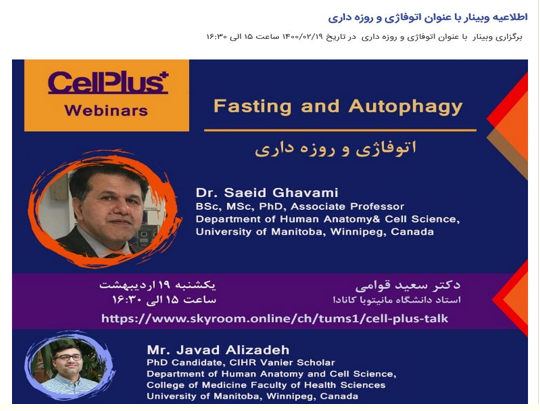 Fasting and autophagy (Presenters: Dr. Saeid Ghavami and Mr. Javad Alizadeh)